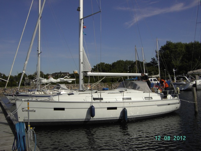 Da wir unser Schiff „TIMPETU“, eine neue BAVARIA 36 im Olympiahafen Hohe Düne in Warnemünde erst einen Tag später übernehmen konnten, mieteten wir uns für eine Nacht inmitten des Treibens der Hanse Sail und der Traditionsschiffe im Rostocker Hafen auf der Dufour 50 Classic Segelyacht GRAND CRU (http://www.gcincentive.de/) ein, wo uns der ungewöhnlich gastfreundliche Eigner Heino und Andrea mit Originallivemusik an Bord, echter kuscheliger Daunen-Bettdecke samt Handtuch, Seife, einer Tafel Schokolade von Maser Roth und einem Fläschchen Rotwein J.P. Chenet Cabernet-Syrah auf dem Kopfkissen und am nächsten Morgen mit einem überreichlichen, ausgezeichneten Frühstück verwöhnt haben. Ein viel versprechender Auftakt neben dem Besuch der Attraktionen der Hanse Sail. Natürlich vergaßen wir nicht die Einkehr in der Traditionskneipe KOGGE zu einer wohlschmeckenden Soljanka.