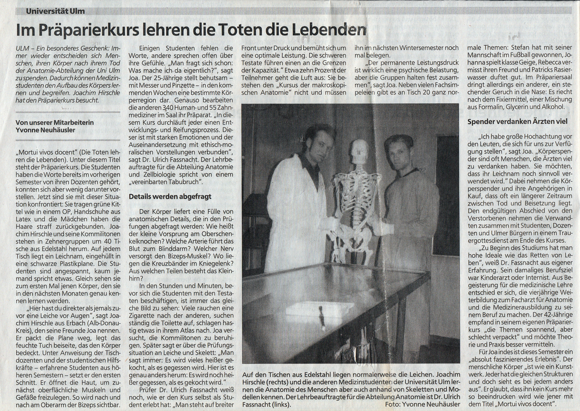 - Artikel in der "Schwäbischen Zeitung " über den Präparierkurs