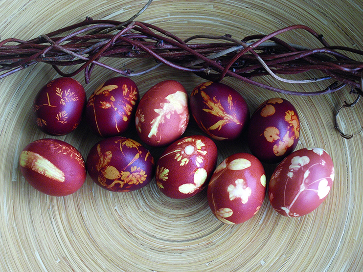 Eier natürlich färben mit Blätter- und Blütenmustern,