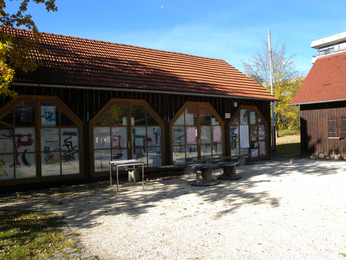 Die Waldarbeiterhütten an der Mensabaustelle sind das Musische Zentrum der Uni Ulm