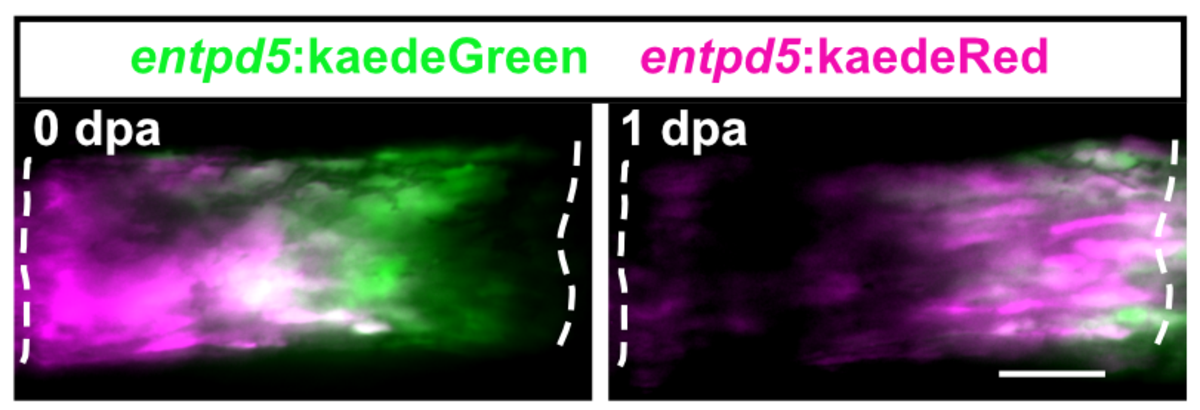 Intriguingly, when we induce two bone defects internally in a fin, osteoblasts migrate and dedifferentiate at both injuries, while regenerative bone growth only occurs on the distal-facing side. This implies that migration and dedifferentiation represent generic osteoblast trauma responses that can occur even when they are not followed by bone regeneration. Consequently, molecular mechanisms must exist that regulate generic vs regeneration-specific responses of osteoblasts to trauma. We plan to gain molecular insight into such mechanisms in the third funding period. Finally, we have discovered that osteoblasts appear to be heterogenous during bone homeostasis and in the extent by which they dedifferentiate in response to trauma. This could be an indication of the existence of unrecognized osteoblast subpopulations. We will resolve osteoblast heterogeneity and molecular transition stages during dedifferentiation using single cell RNA sequencing.