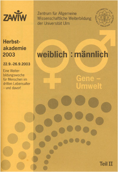 Programmheft Titelblatt Vorwort Einführung Vorträge Sonderveranstaltung Arbeitsgruppen Mittwochsangebote Förderkreis ZAWiW Anmeldung Ankündigungen Fotos