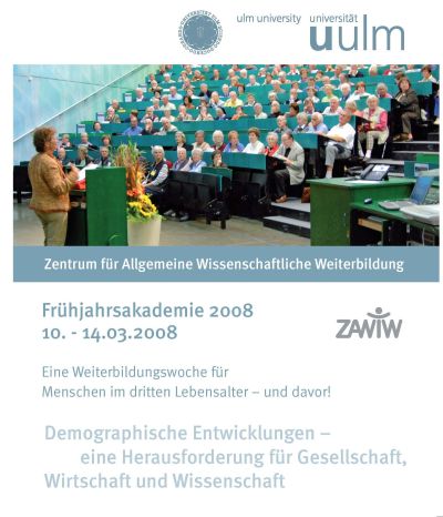 Programmheft Titelblatt Vorwort Einführung Vorträge Arbeitsgruppen Ankündigungen Mittwochsangebote Hinweise Förderkreis ZAWiW Sonderveranstaltung