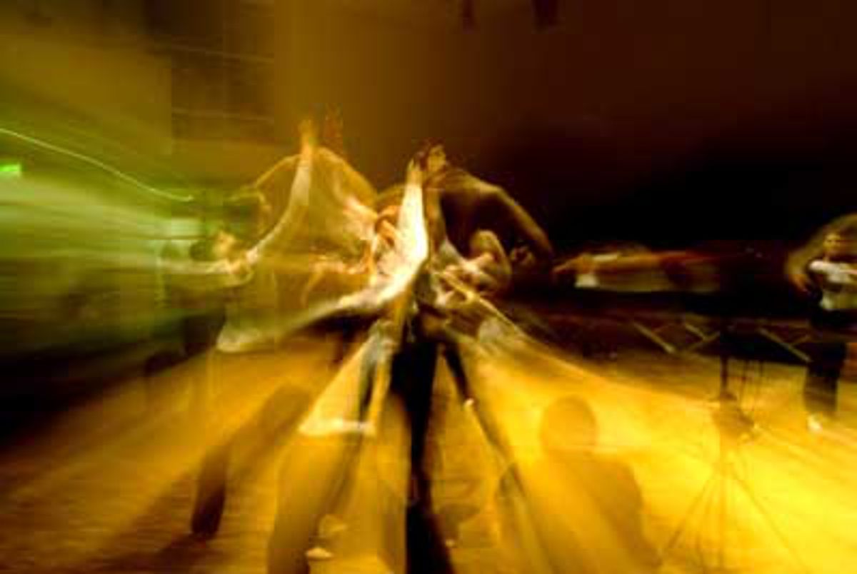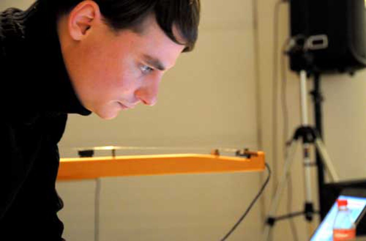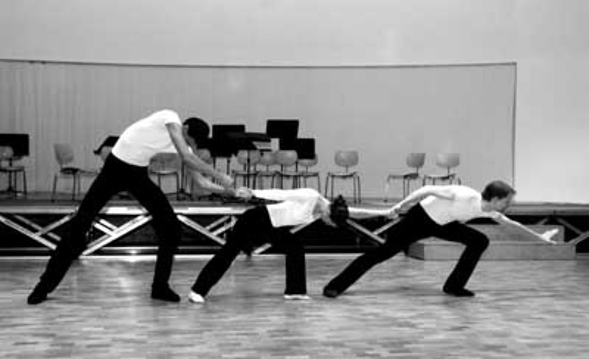 Während des Aufbaus und dem Test des Live-Video-Still-Projektes - parallel zum UniBallett: Roland Jetter (mitte) führt die Video-Camera und Andhi Pabst steuert über das VVVV-Programm die Bildauswahl. (ab)