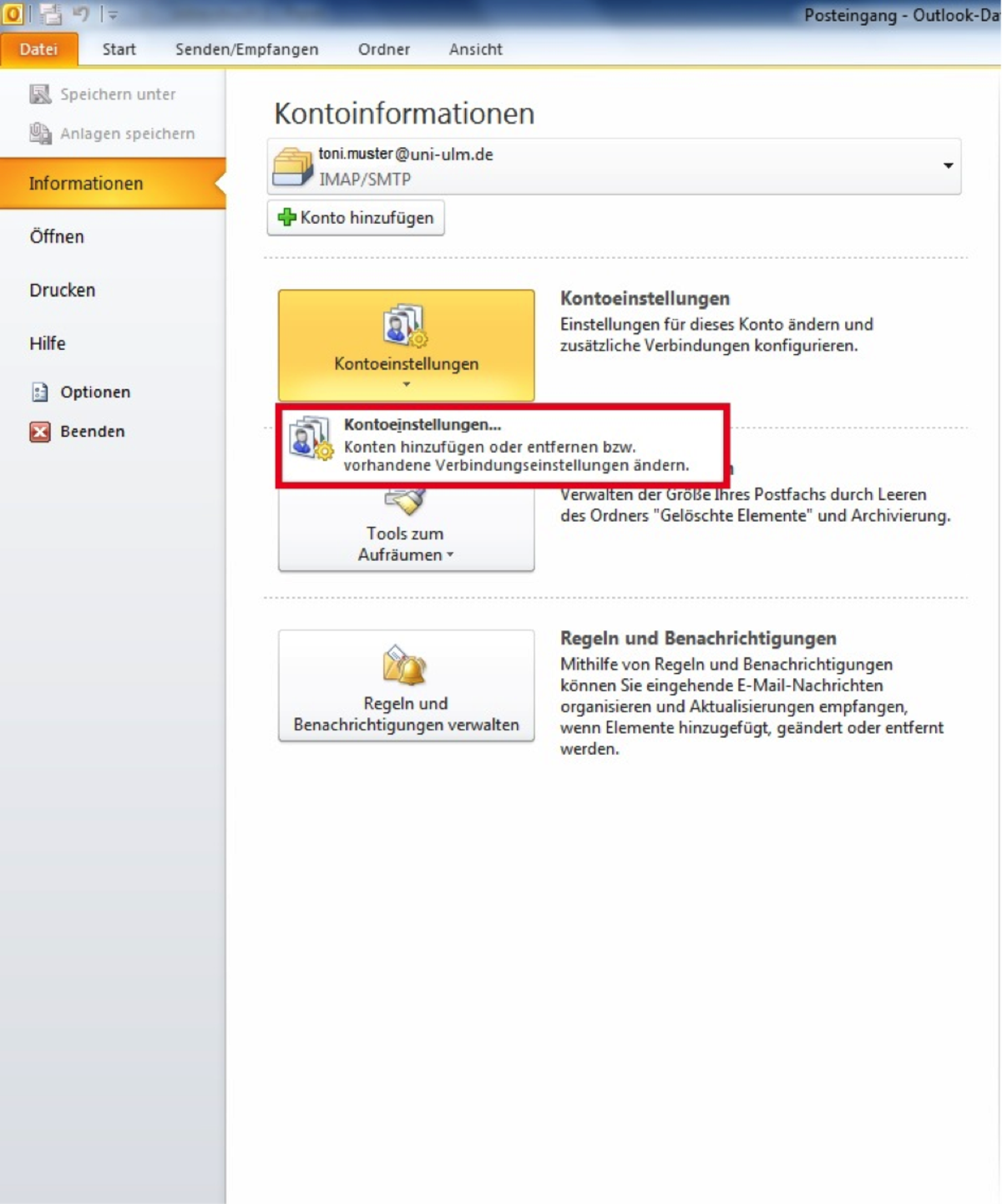 In the following, we will show you how to configure the Outlook programme for the @uni-ulm.de email address.