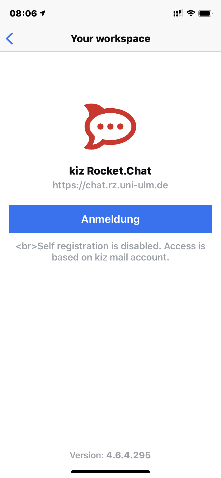 - Rocket.chat only works with a kiz account