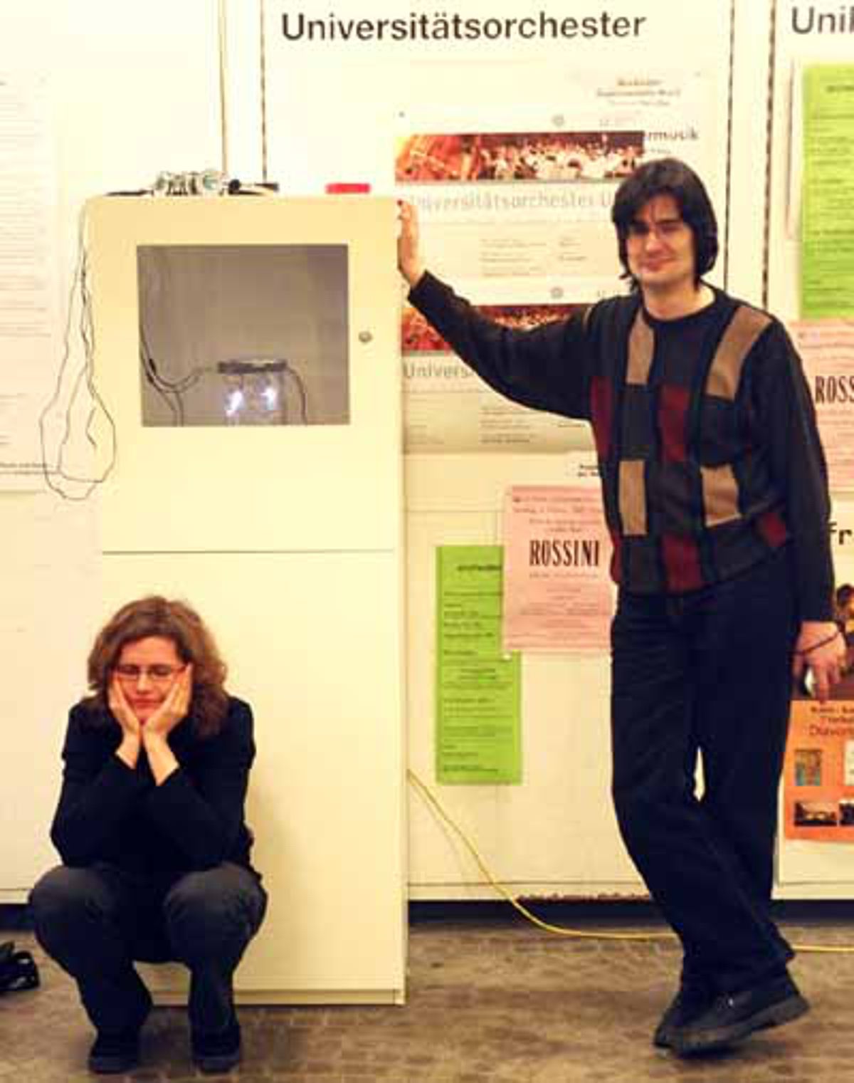 Die Ausstellungseröffnung „Schwarzweiß" in der Galerie „The Laboratorium" des Musischen Zentrums der Universität Ulm war gekoppelt mit einer Klangperformance der Gruppe EMU, die sich unter Dieter Trüstedts Leitung um experimentelle Musik verdient macht.