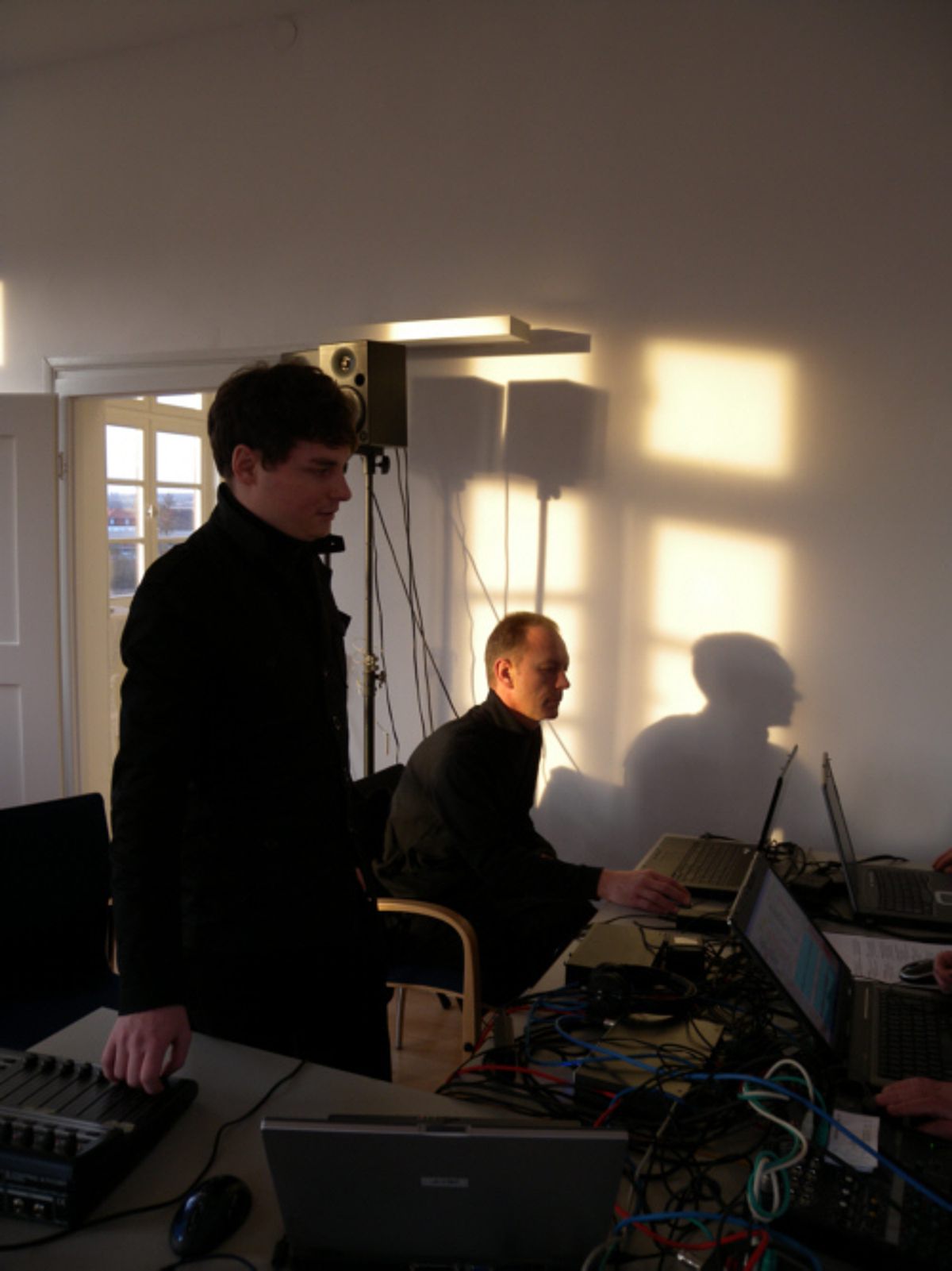 die zweite Etage wurde vom EMU-Laptop-Ensemble mit Lichtprojektionen und experimenteller Musik bespielt.