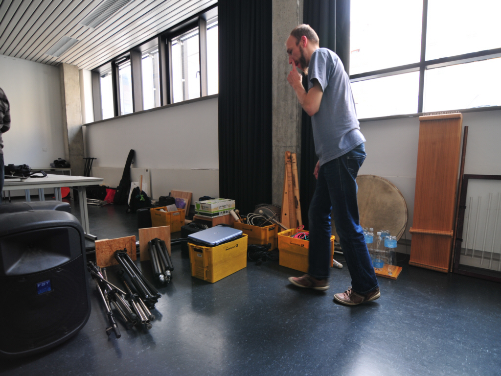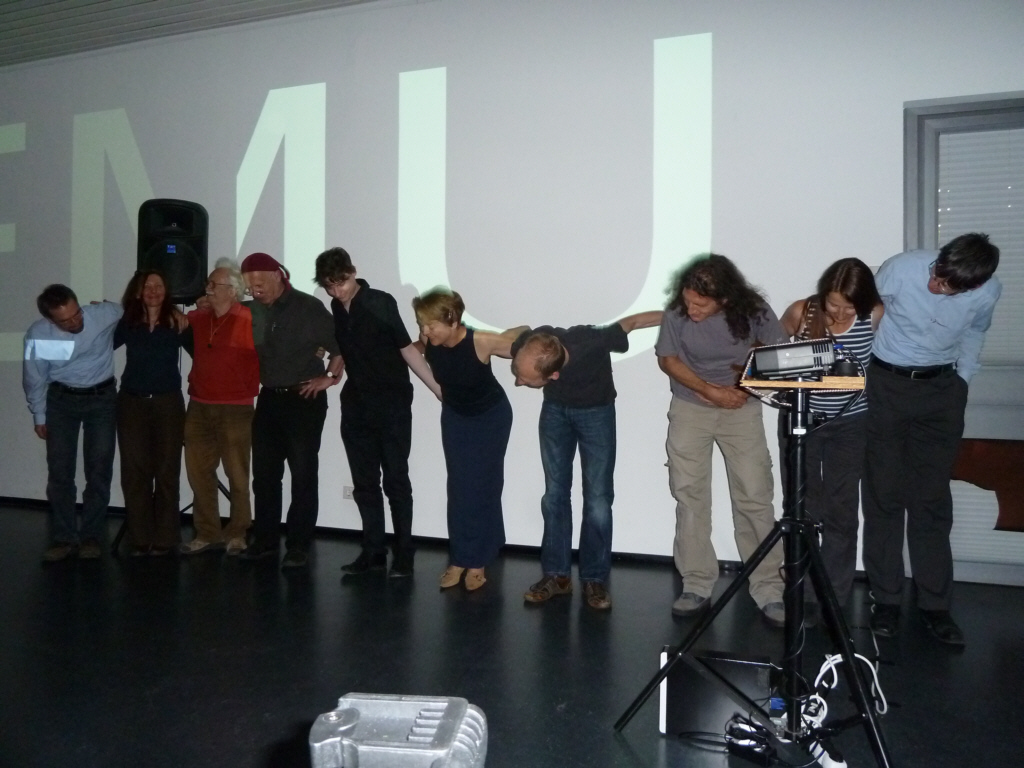 Die EMU taucht das vh Atelier in einen synästhetischen Farb-Duft-Rausch. Zum Einsatz kommen dabei neben computergenerierten Sounds und Beamern Chin´s, Uchiwadeikos, Bassrohre, Hirtenflöten, Dan Bao und Stimme, Nonenrauschen, Klangminis, Gravitationen und vertonte Düfte.