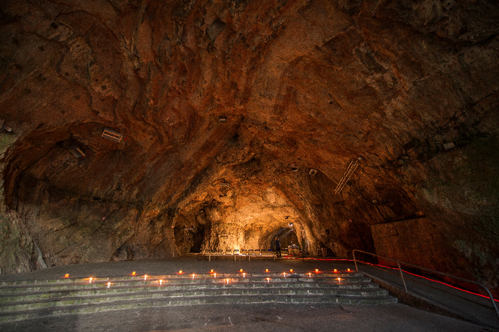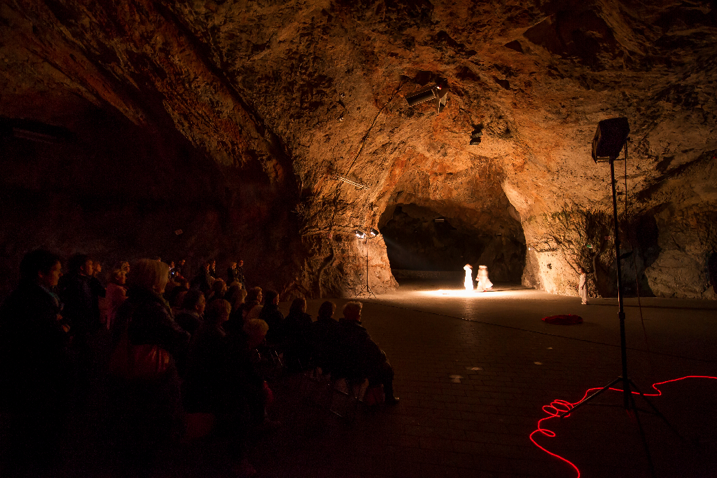 An diesem Abend wurde die Balver Höhle bei Iserlohn zum weiten Raum für Performance-Künstler/innen aus München und Ulm, die sich dem Zustand, dem Begriff, dem nicht Greifbaren, dem uns allen wenig Fassbaren oder Vorstellbaren, experimentell mit Bild, Klang, Bewegung und Text annäherten.