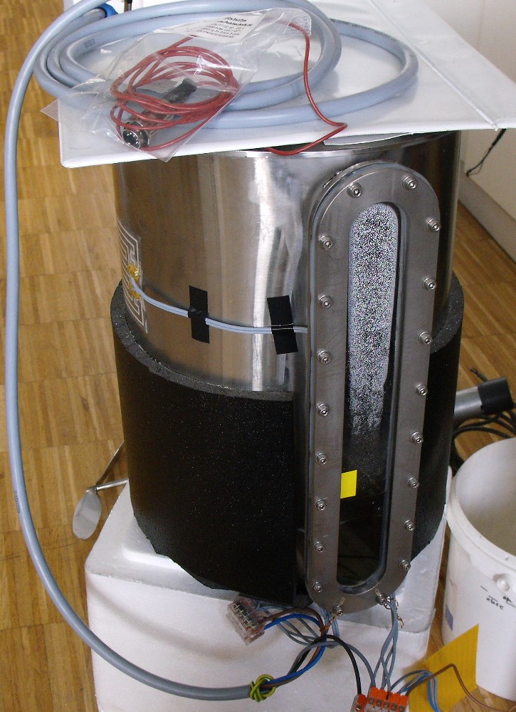 To heat the vessels (max 45°C) heating foils are glued around the vessel. The heating process with a power of about 150W takes a while. A good insulation of the vessels is therefore necessary.