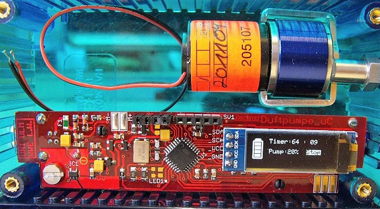 The first generation of these scent pumps suffered from the problem that the battery was always empty when it was needed. An additional low-voltage cutoff then protected the battery, but could not solve the actual problem and the poor energy efficiency.