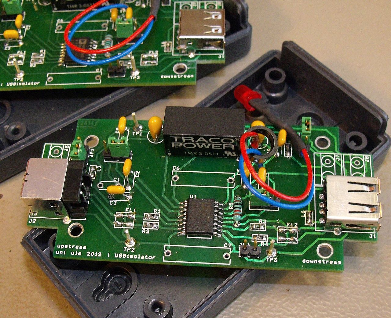 To prevent this, we built a USB isolator (USB2), which transmits the bus signals potential-free.