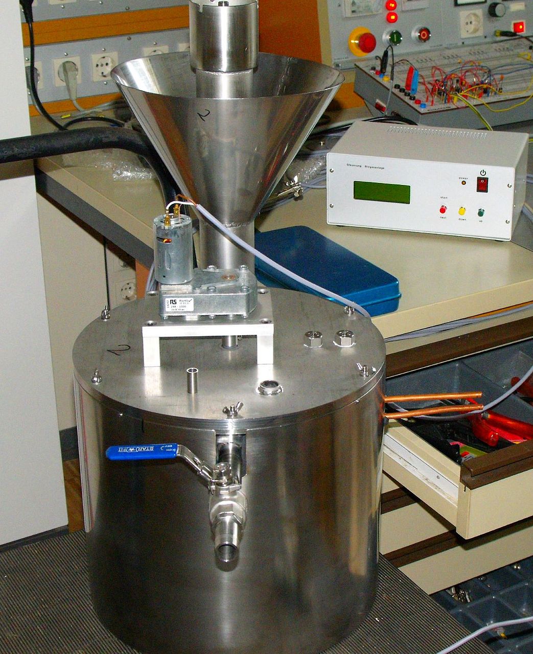 In a first version the substrate is fed by a screw conveyor. Here, too, the screw is automatically timed.