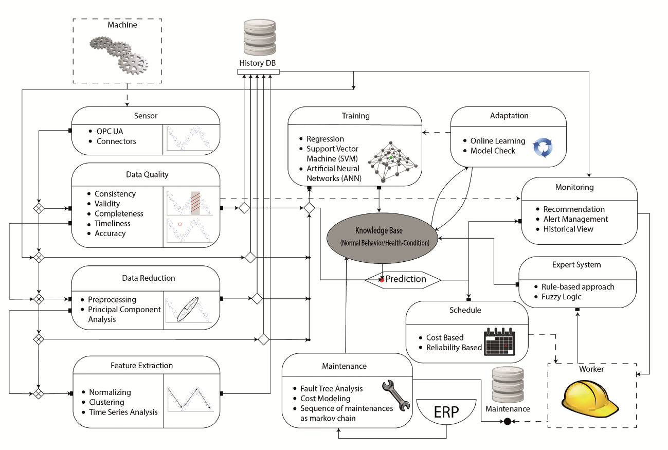 Considering growing data logging, it is necessary to include data reduction techniques and distributed analyses. All collected information is used to train the application and forecast machine behavior.