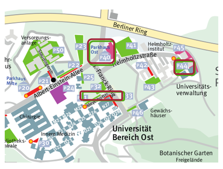 As a visitor please use the parking deck in Helmholtzstraße marked 'Parkhaus Ost' on map shown on top.
