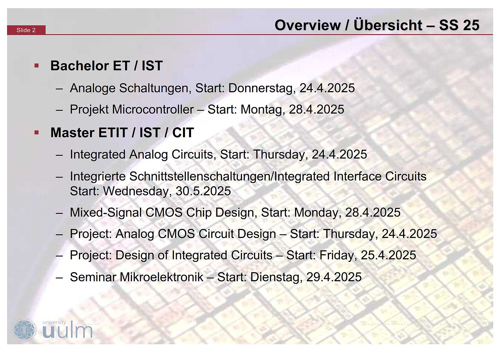 - Mixed-Signal CMOS Chip Design - DE