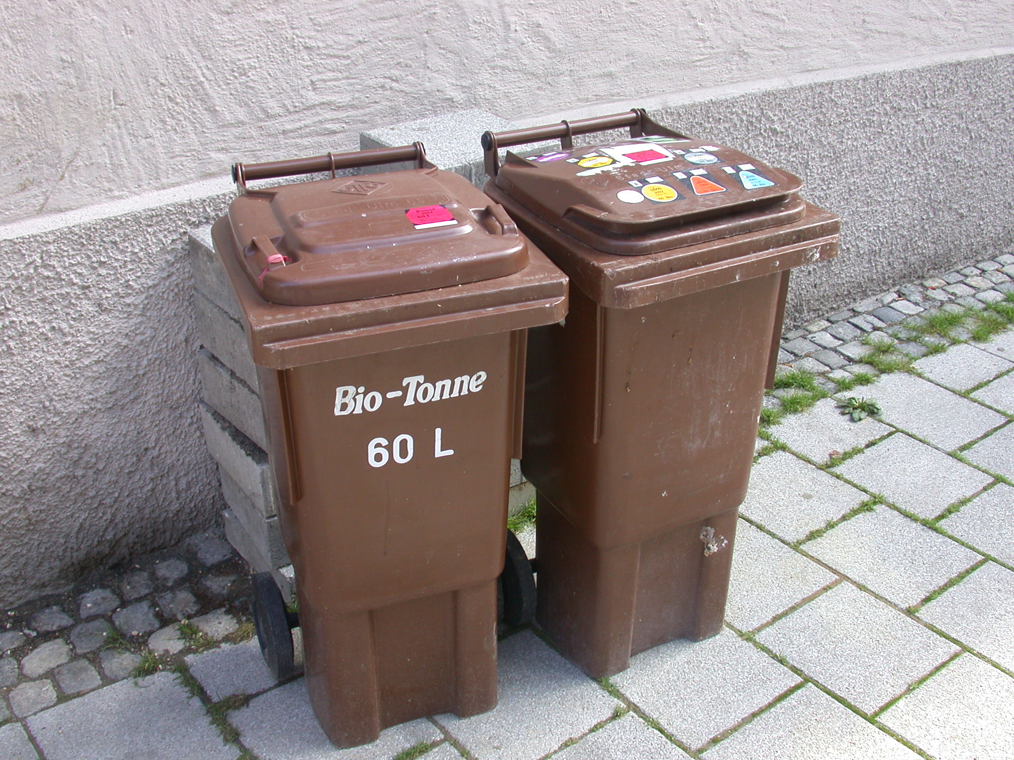For all kinds of paper, e.g. newspapers, magazines, cardboard and packaging material. Clean paper only – no coated paper (from milk or juice packs) or tissues. - Biotonne (brown bin, Biomüll)