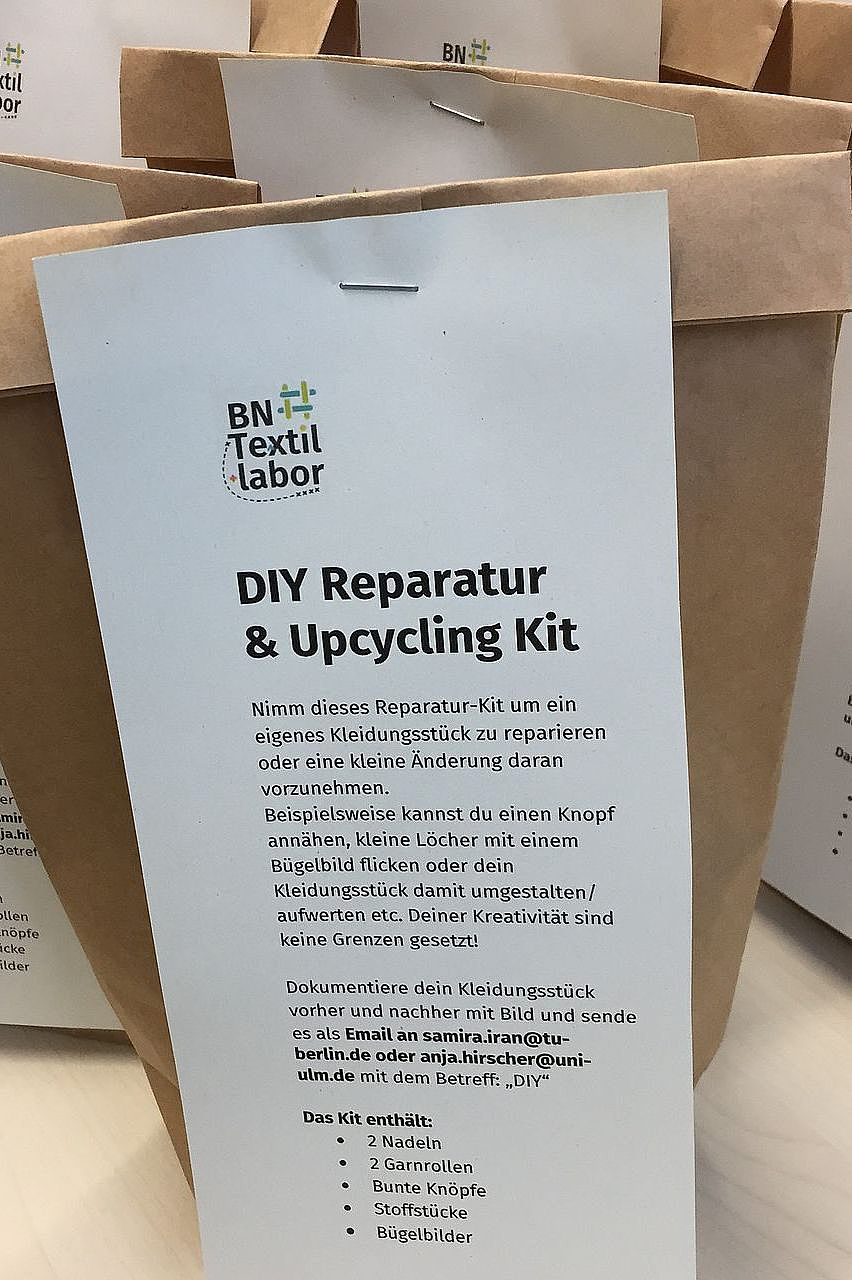 Für die Praxis-Workshops mit den Reparatur- und Verschönerungstechniken kann den SuS ein Reparatur-Set oder eine DIY-Toolbox als Begleitung durch ihr Projekt zur Verfügung gestellt werden. Mit dem enthaltenen Material sind einfache Reparaturen per Handnähen möglich. Das Material kann z.B. in Bodenbeuteln aus Papier zusammengestellt werden, die SuS verwalten ihr Reparatur-Set selbst. Evtl. kann für die Workshops noch eine Auswahl an Scheren bereit gestellt werden.