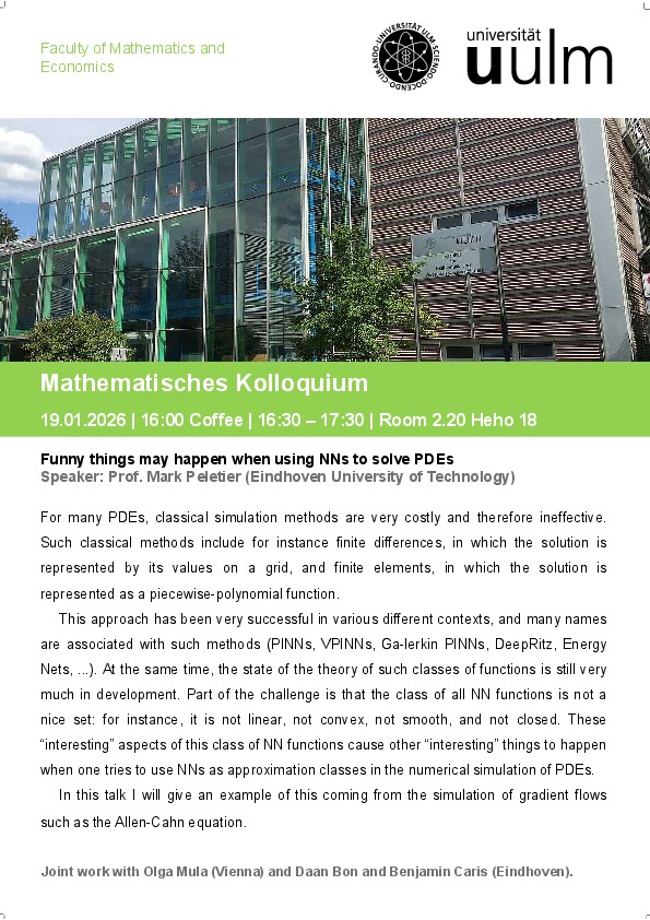 19.01.2025 (Mathematisches Kolloquium 16:30 - 17.30 st. Heho 18 220) Prof. Dr. Mark Peletier: