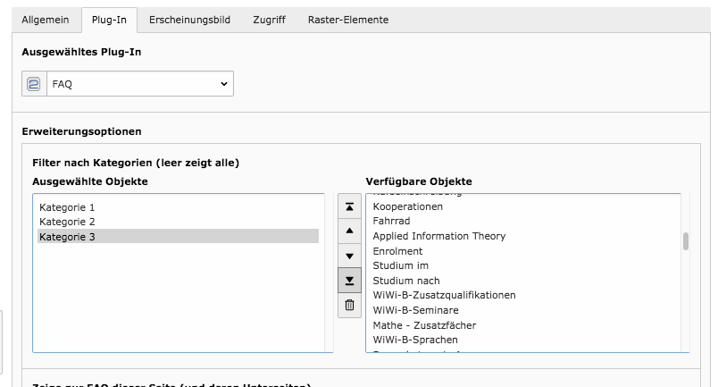 In den Erweiterungsoptionen können Sie nun die Kategorien auswählen die Sie erstellt haben und welchen Sie Ihre Fragen zugeordnet haben.