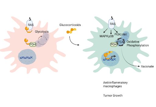 We also discovered that the stress hormone-activated glucocorticoid receptor (GR) not only controls inflammation via transcriptional effects, but also influences inflammation resolution through non-genomic effects that influence cellular immune metabolism and attenuate oncogenic RAS signalling.