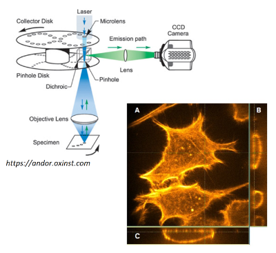 Spinning-disk confocal microscopy is applied using different fluorescence tagging strategies.