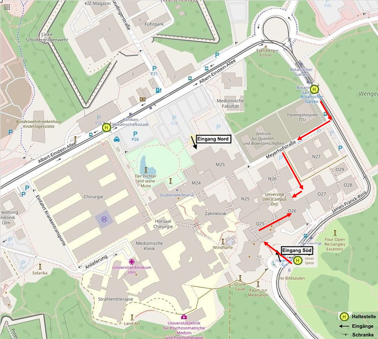 So finden Sie uns auf dem Universitätsgelände