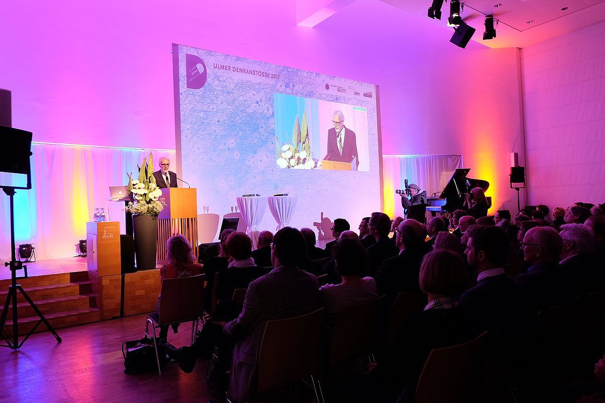 Durch diese Weichenstellung war klar: Die Veranstaltung muss im Herzen der Stadt angesiedelt sein, in einem offenen Haus für die Bürgerschaft. Die Wahl fiel auf das Stadthaus, das genau dafür steht, und dem die Ulmer Denkanstöße in all den Jahren treu geblieben sind – obwohl es mitunter aus allen Nähten zu platzen drohte.