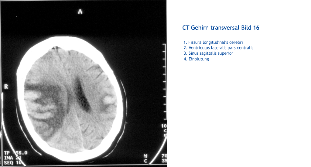 Einblutung Sinus sagittalis superior Sinus sagittalis superior Ventriculus lateralis pars centralis Fissura longitudinalis cerebri