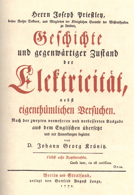 Priestleys Buch "Geschichte der Elektrizität" erscheint.
