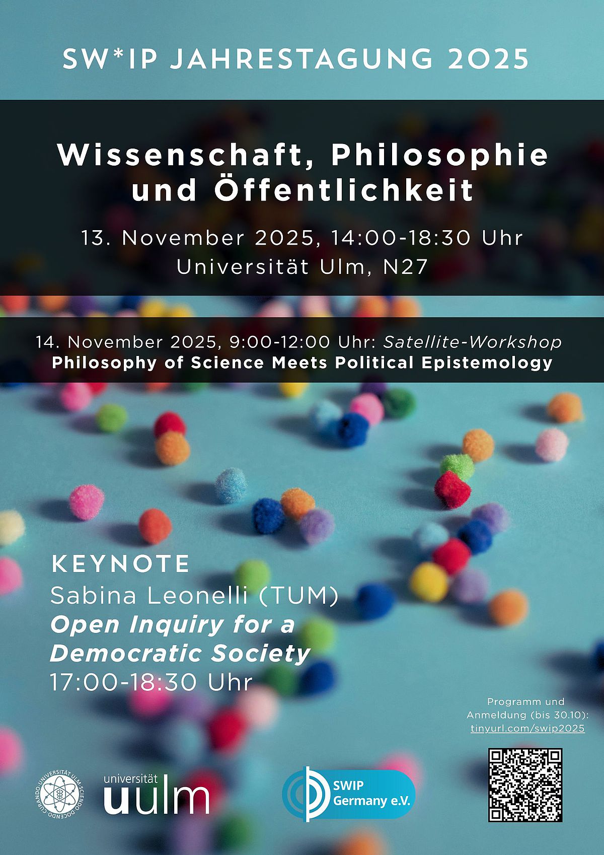 Die SW*IP Jahrestagung 2025 zum Thema „Wissenschaft, Philosophie und Öffentlichkeit“ findet am Donnerstag, den 13. November an der Universität Ulm statt.