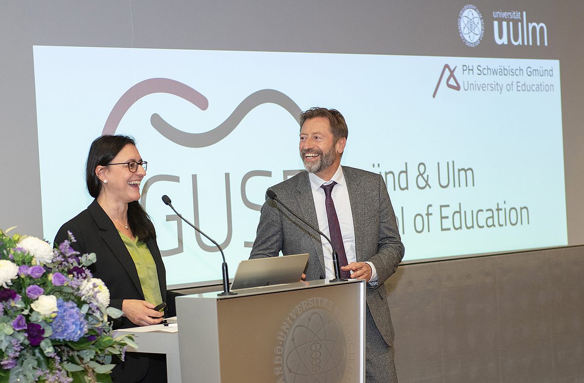 „Die Gmünd Ulm School of Education (GUSE) ist eine gemeinsame Einrichtung zweier starker Partner: Sie vereint die didaktische und bildungswissenschaftliche Kompetenz der PH Schwäbisch Gmünd mit der fachwissenschaftlichen Exzellenz der Universität Ulm“, so Ministerialdirektor Dr. Hans J. Reiter, der am Freitag nach Ulm gekommen war. „Mit ihr entsteht ein Ort, an dem Theorie und Praxis, Forschung und Ausbildung, Wissenschaft und Schule eng miteinander verzahnt sind.“ Damit würden beide Hochschulen Verantwortung übernehmen, um dem Fachkräftemangel im Bildungswesen aktiv zu begegnen. Über die Förderung sagte Reiter: „Das ist unser klares Bekenntnis: Wir wollen die exzellente Lehrkräfteausbildung weiter stärken und wollen, dass die Zusammenarbeit zwischen der Universität Ulm und der PH Schwäbisch Gmünd zu einem Erfolg wird.“