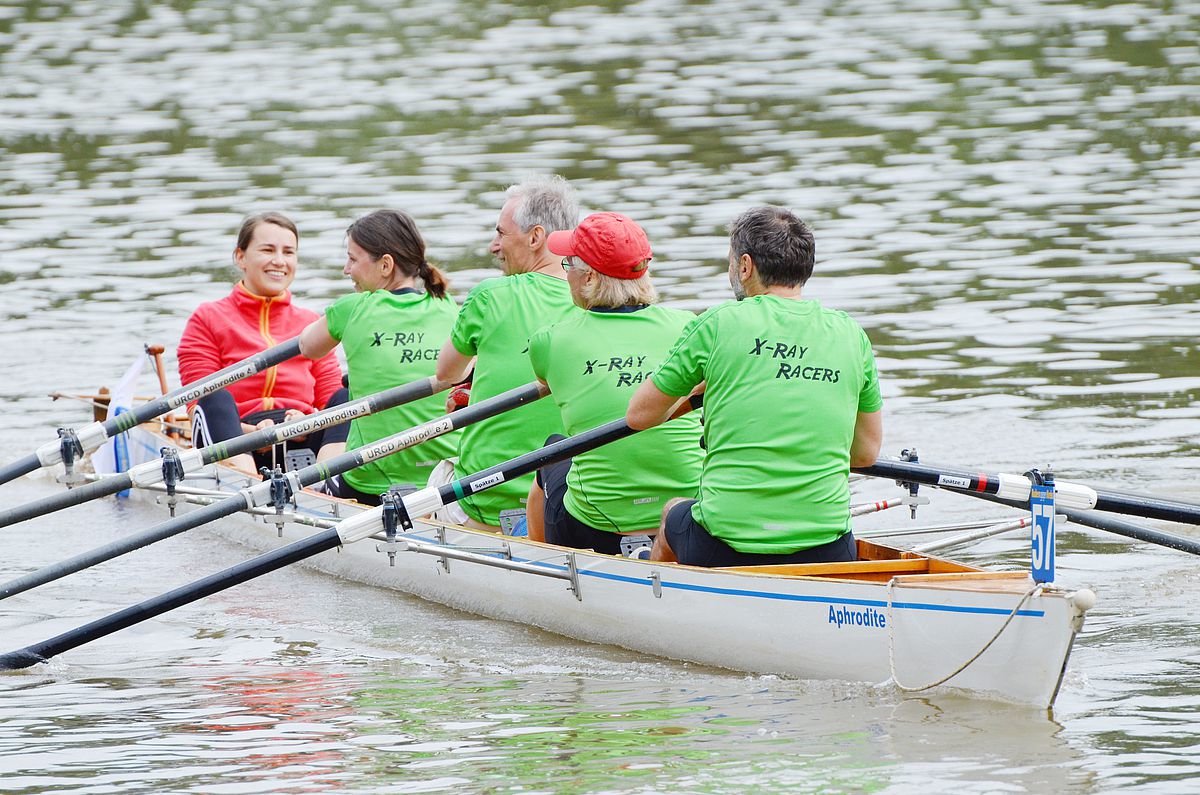 Bei der dritten Auflage der Benefizregatta "Rudern gegen Krebs" gingen am Sonntag 123 Boote an den Start - 33 mehr als im Vorjahr. Bei relativ starker Strömung legten sich sowohl Patienten mit Krebserkrankungen als auch Teams aus Universität, Klinikum sowie Ulmer Unternehmen und Vereinen in die Riemen. Unter den Hobbysportlern waren dieses Mal der Ulmer Universitätspräsident Professor Michael Weber, Ärztliche Direktoren und Nachwuchstalente des Basketballteams ratiopharm ulm.