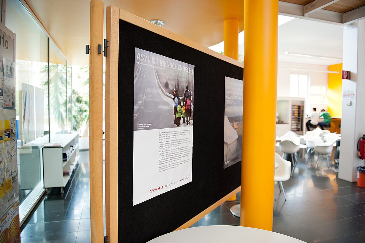 Die von "Pro Asyl" konzipierte Ausstellung "Asyl ist Menschenrecht" ist ab sofort bis Ende Januar im Foyer der Zentralbibliothek (Albert-Einstein-Allee 37) zu sehen. Die aktualisierte und thematisch erweiterte Ausstellung informiert auf 37 didaktisch aufbereiteten Tafeln über Fakten und Hintergründe zum Thema Flucht und Asyl. "Niemand ist gefeit vor Flucht und Verfolgung. Deshalb ist es so wichtig zu zeigen, wie ähnlich sich die Menschen sind in ihrem Streben nach Sicherheit und Glück", erklärt Studentin Julia Langelittig, die sich im AK "Flucht und Asyl" engagiert.