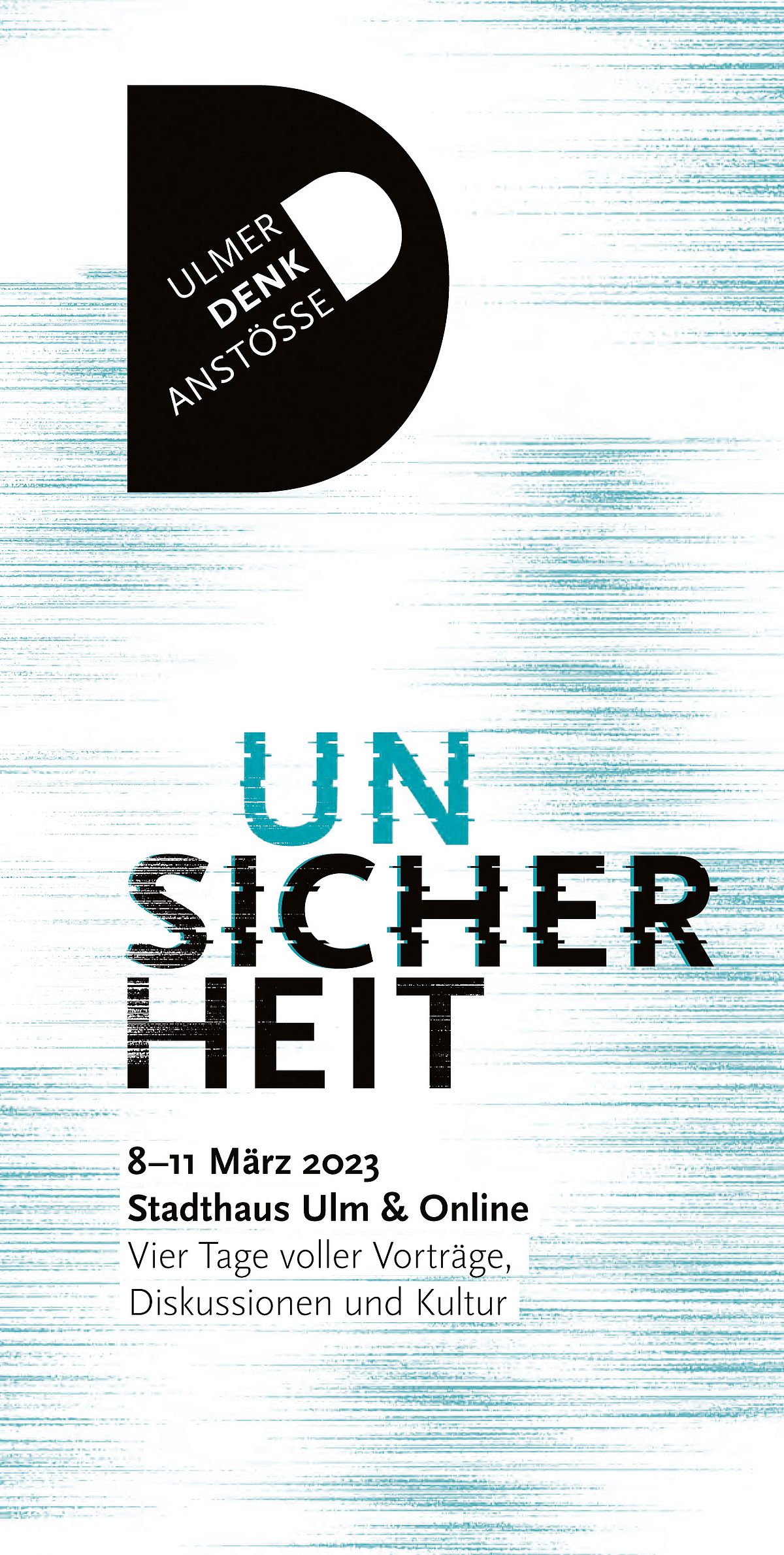 Kriege, Klimawandel, Katastrophen – weltweit stapelt sich Krise auf Krise. Die Verunsicherung wächst und damit das Bedürfnis nach Sicherheit. Wie gehen wir als Gesellschaft damit um? Wie können wir als Individuum damit fertig werden? Die Ulmer Denkanstöße 2023 stehen ganz im Zeichen des vielschichtigen Spannungsverhältnisses zwischen Unsicherheit und Sicherheit. Vom 8. bis zum 11. März heißt es dann wieder: vier Tage voller Vorträge, Diskussionen und Kultur – sowohl im Stadthaus Ulm als auch online.