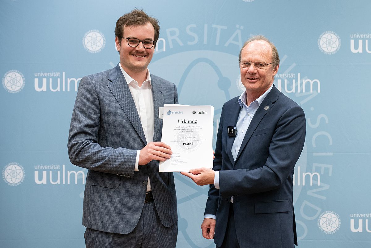 Beim 2. Science Day an der Universität Ulm für den wissenschaftlichen Nachwuchs wurden wieder 80 000 Euro an Preisgeldern vergeben. 50 000 Euro für den ersten Platz im Pitch-Wettbewerb erhielt der Sozialpsychologe und Psychotherapeut Dr. Michael Barthelmäs. Der zweite Platz und damit 30 000 Euro ging an den Biochemiker Dr. Matthias Mack. Einen Mobilitätsgutschein in Höhe von 1500 Euro erhielten jeweils die anderen vier Kandidatinnen und Kandidaten. Die Veranstaltung der Nachwuchsakademie „ProTrainU“ hat sich bereits bestens etabliert.