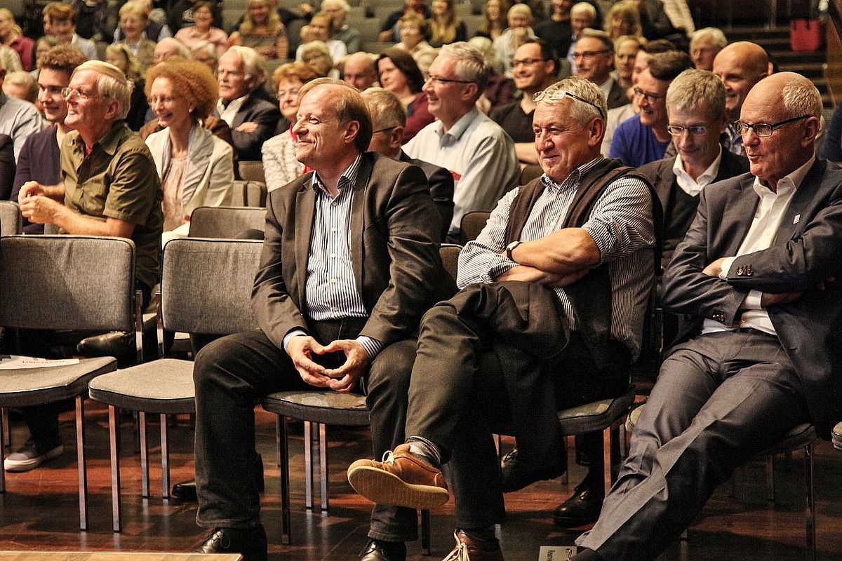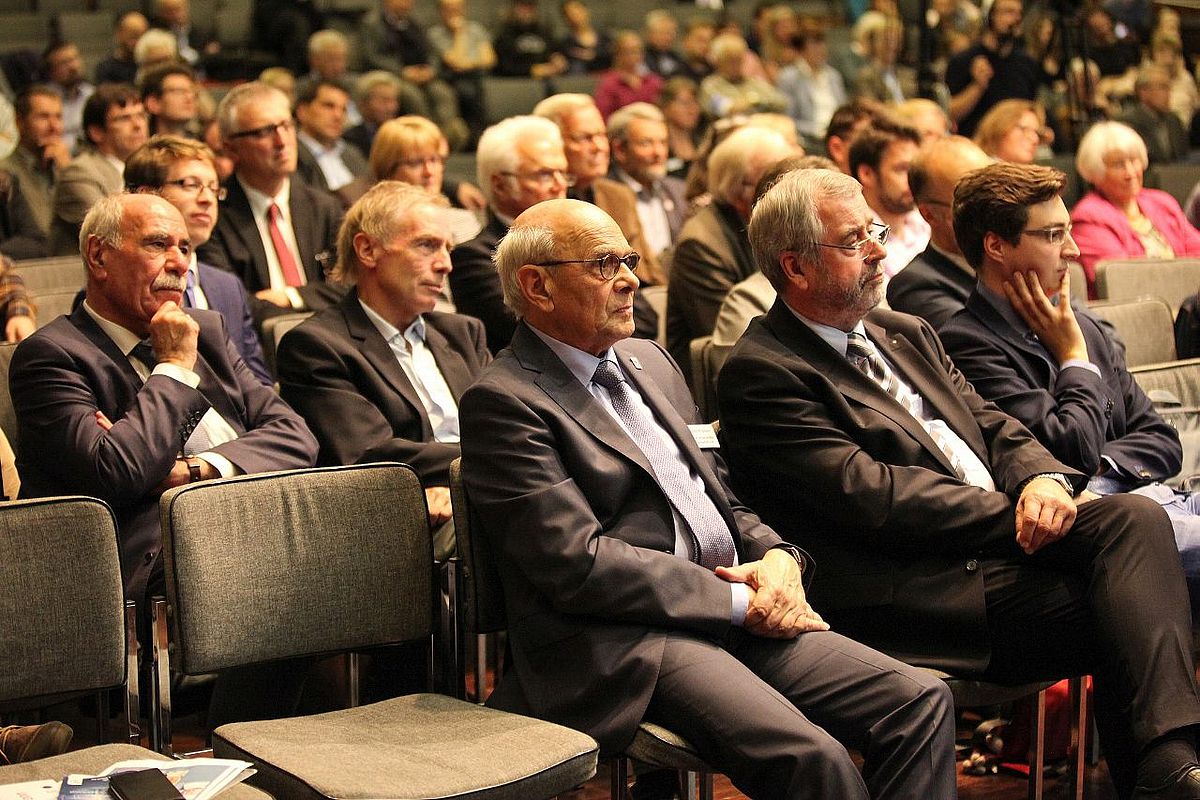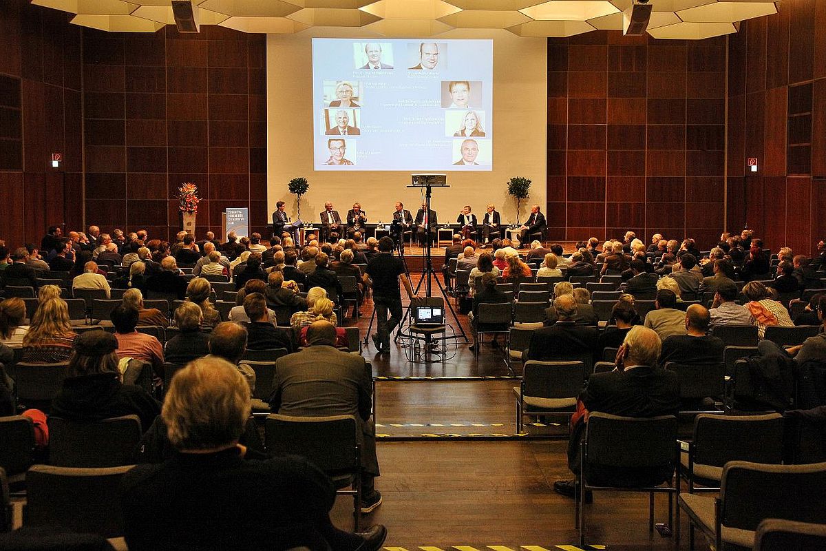 Und genau um solche Visionen ging es beim Zukunftsforum "Uni-Topia", das als dritte große Veranstaltung im Jubiläumsjahr der Universität im Ulmer Kornhaus stattfand. Veranstaltet wurde die prominent besetzte Veranstaltung ganz bewusst an diesem historischen Ort. So erinnerte der UUG-Vorstandsvorsitzende Hans Hengartner bei der Begrüßung an den Gründungsakt, der am 25. Februar 1967 im Kornhaus stattfand, und blickte zurück auf die besondere Vorgeschichte: "Vor fünfzig Jahren haben sich Bürger, Politik und Wirtschaft die Universität gegen den Widerstand der Landesregierung erkämpft", so Hengartner. Den Bogen in die Zukunft spannte schließlich Moderator Dr. Jan-Martin Wiarda mit den Leitfragen zur Veranstaltung. Wie werden sich die Universitäten in Deutschland entwickeln? Welche Erwartungen werden Politik, Wirtschaft und Gesellschaft an sie stellen? Mit welchen Herausforderungen wird konkret die Universität Ulm konfrontiert sein? Die Antworten dazu fielen vielfältig und mitunter kontrovers aus.