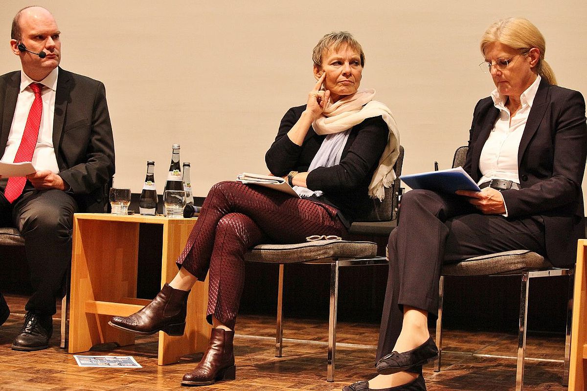 So waren sich die Wissenschaftsratsvorsitzende Professorin Martina Brockmeier und die Präsidentin der Berliner Humboldt-Universität Professorin Sabine Kunst mit dem Ulmer Unipräsidenten Professor Michael Weber einig darüber, dass Universitäten auch in Zukunft einen ganz bestimmten Auftrag zu erfüllen hätten. Dieser bestehe konkret darin, Wissen zu generieren und an die Gesellschaft weiterzugeben, wobei - in unterschiedlicher Stärke - drei Säulen zum Tragen kämen: die Forschung, die Lehre und der Wissenschaftstransfer. Ein funktional ausdifferenziertes Bildungssystem, an dessen einen Ende die Berufs- und Praxisorientierung stehe und am anderen die Spitzen- und Grundlagenforschung, mache deshalb auch in Zukunft Sinn. Dr. Ulrich Simon, Leiter Unternehmensforschung und Technologie bei der Carl Zeiss AG, hingegen prognostizierte eine gewisse Nivellierung im Bildungsbereich. Die Universitäten agierten ja nicht im luftleeren Raum und müssten sich allesamt stärker nach den Bedürfnissen der Wirtschaft ausrichten. Denn die Veränderungen auf dem Arbeitsmarkt seien durch die rasanten technologischen Entwicklungen dramatisch. "In Zukunft werden wohl auch Schreiner an der Universität studieren", meinte Simon. Dies wollten seine Mitdiskutanten so aber nicht stehen lassen. Schließlich hätten sich die unterschiedlichen Formate wie die duales Studium, Hochschule und Universität ja durchaus bewährt. "Und wir tun ja dem Schreiner keinen Gefallen damit, wenn wir ihn im Grundstudium mit höherer Mathematik beglücken", sagte Weber.