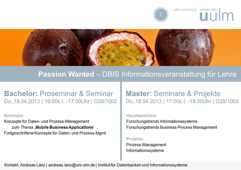 Infoveranstaltung, Andreas Lanz, Ort: O28/1002, Zeit: 16:00 Uhr, Datum: 18.04.2013