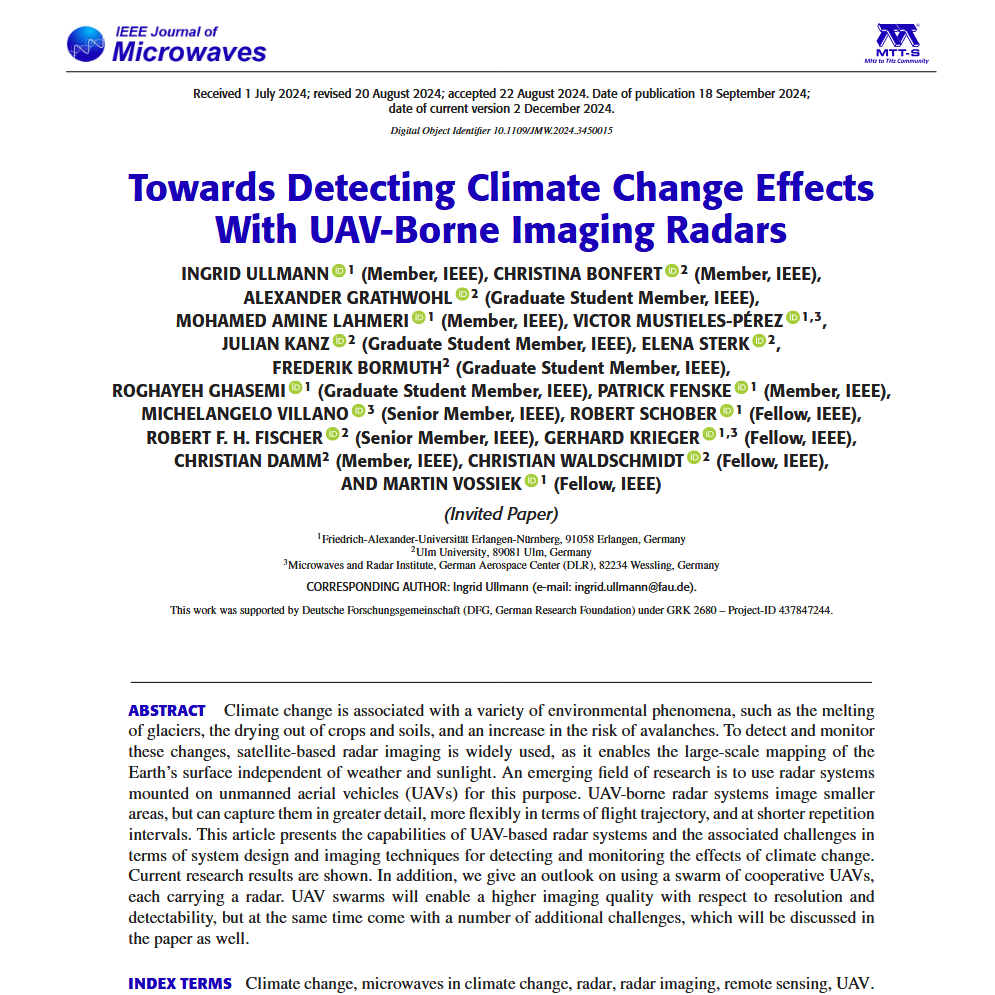 Proudly presenting: Our joint paper “Towards Detecting Climate Change Effects With UAV-Borne Imaging Radars” is published. This paper is a cooperation between all KoRaTo groups. It presents the capabilities of UAV-based radar systems and the associated challenges in terms of system design and imaging techniques for detecting and monitoring the effects of climate change.