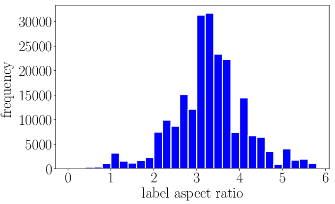 Im Datensatz gbt es eine Vielzahl an annotierten Lichtsignalanlagen mit einer, zwei (z.B. Fußgängerpiktogramm), drei oder vier (Bus/Tram) aktiven Lichtelementen. Dadurch ist die Seitenverhältnisvarianz wesentlich höher als in bisherigen Stichproben, welche sich meist auf Lichtsignalanlagen mit 3 aktiven Lichtelementen fokussiert haben.