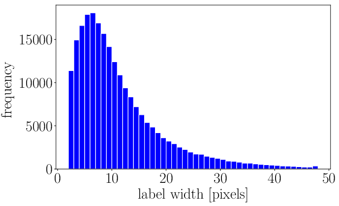 Das verwendete Annotationstool ermöglicht eine Annotation von Objekten der Breite 5 Pixel oder weniger. Aus diesem Grund besteht DTLD aus einer sehr hohen Anzahl an sehr kleinen Objekten (siehe Abbildung 2). Daher ist der Datensatz auch für Forschungen im Bereich der Objekterkennung bei sehr geringen Auflösungen gut geeignet.