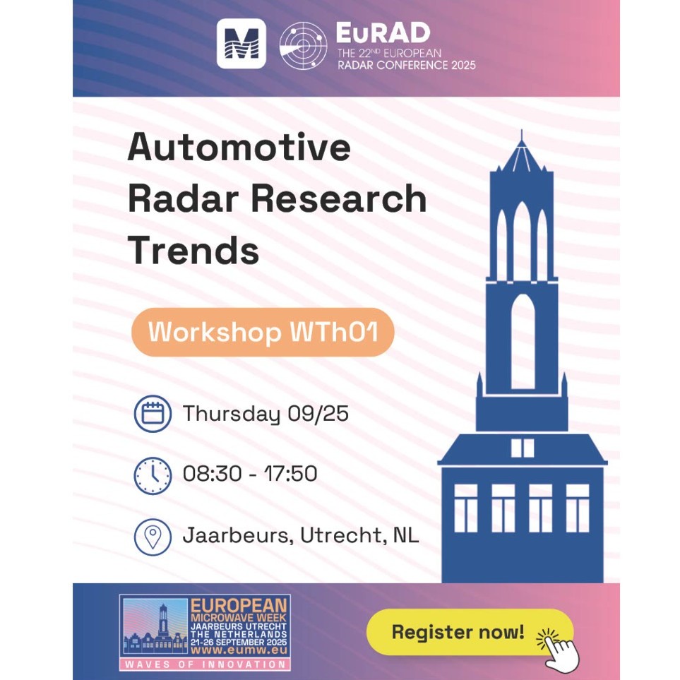 Im Rahmen des Konferenzprogramms organisieren wir einen Workshop zum Thema „Automotive Radar Research Trends“, bei dem Experten zusammenkommen, um über die Zukunft der Radartechnologie in der Mobilität und darüber hinaus zu diskutieren. Im Rahmen dieses Workshops wird Julian Aguilar einen Vortrag zum Thema „Synchronization Concepts for Automotive Radar Networks“ halten.