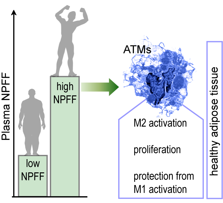 Waqas SFH, Hoang AC, Lin YT, Ampem G, Azegrouz H, Balogh L, Thuróczy J, Chen JC, Gerling IC, Nam S, Lim JS, Martinez-Ibañez J, Real JT, Paschke S, Quillet R, Ayachi S, Simonin F, Schneider EM, Brinkman JA, Lamming DW, Seroogy CM, and Röszer T: Neuropeptide FF increases M2 activation and self-renewal of adipose tissue macrophages; in: The Journal of Clinical Investigation; 127(7), https://doi.org/10.1172/JCI90152;