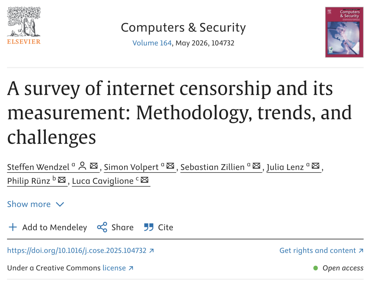 We published a new survey article on internet censorship in the journal Computers & Security (COSE).