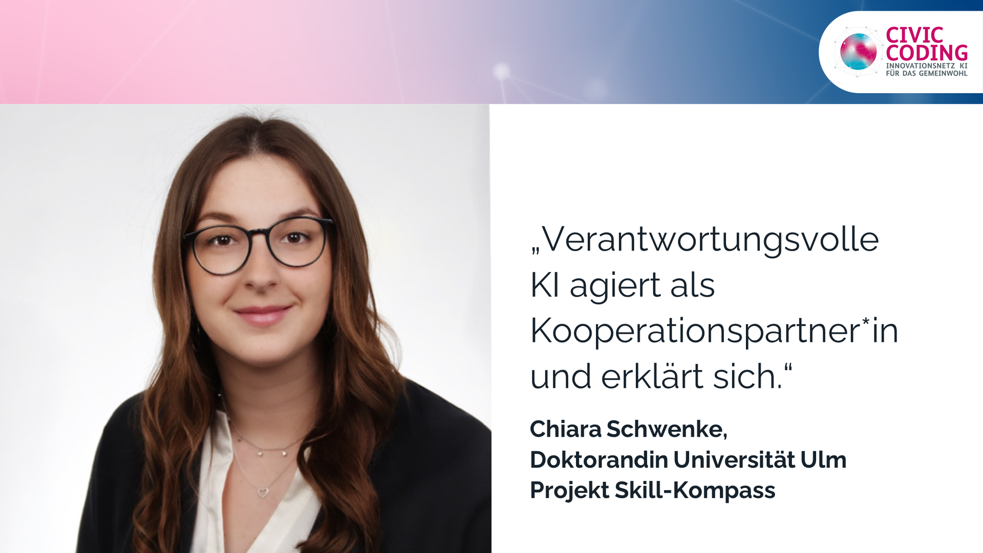 In einem gemeinsamen Projektvorhaben haben die Universität Ulm und START im Rahmen des Wettbewerbs „Gemeinsam wird es KI” der Civic Innovation Plattform des Bundesministeriums für Arbeit und Soziales hierzu Anforderungen an den „Skill-Kompass“ identifiziert, in einem Prototypen umgesetzt und mit Stipendiat:innen getestet. Die Konzept wurde beim dazugehörigen Ideenwettbewerb „Gemeinsam wird es KI“ ausgezeichnet.