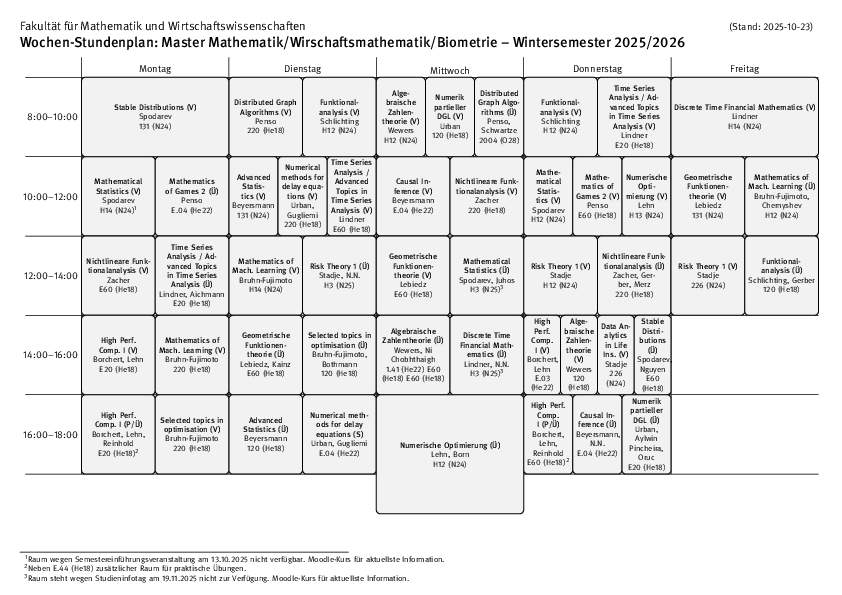 | Lehrveranstaltungen Ma/WiMa/MaBi/CSE für Wintersemester 2025/2026 (Stand 23.10.2025) | |