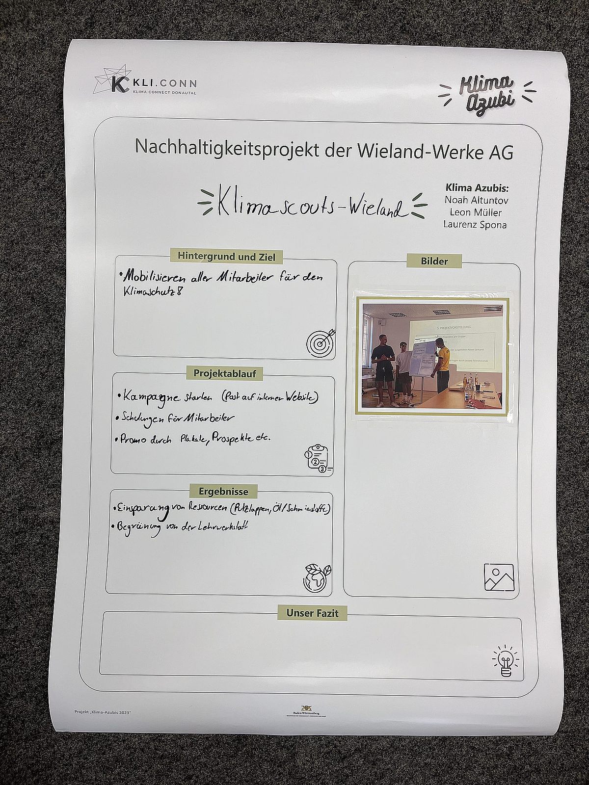 Am 22.03.24 war es endlich soweit: Nach 6 Kurstagen zu verschiedenen Themen wie Konsum, Mobilität oder Energienutzung wurden beeindruckende Ergebnisse präsentiert! Azubi-Teams von Uzin Utz, Teva, Husqvarna, Wieland, Noerpel und den Stadtwerken Ulm stellten ihre eigenen, innovativen Ideen im Uzin Utz Forum vor. Die Vielfalt der Nachhaltigkeitsprojekte reicht von einer Online-Tauschplattform über Nistkästen-Initiativen bis hin zu selbstgebauten Palettenmöbeln für den Azubi-Garten. Ein herzliches Danke an alle Beteiligten für ihr Engagement!