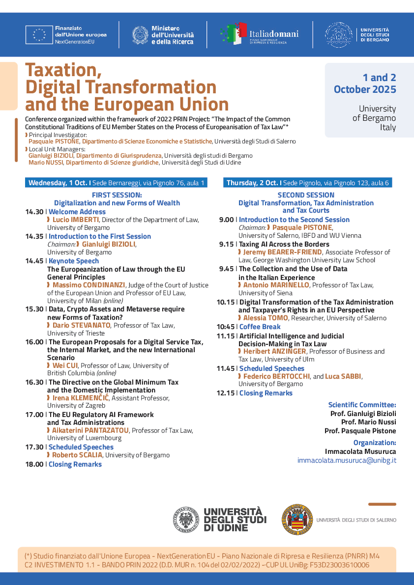 Artificial Intelligence and Judicial Decision-Making in Tax Law, Conference on Taxation, Digital Transformation and the European Union, 2. Oktober 2025, Universität Bergamo